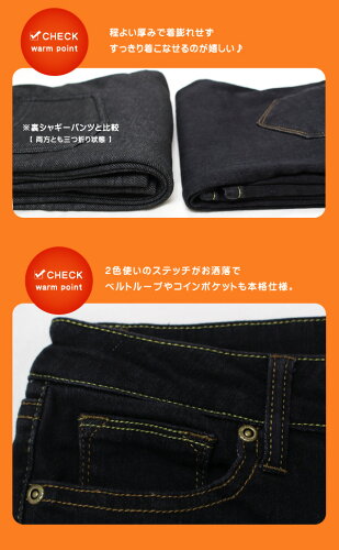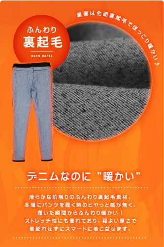 【2枚で送料無料】 ソフト 裏起毛 スキニー デニム 美脚 前ボタン ストレッチ リアルデニム 2色ステッチ 防寒 温パン ぬくパン あったか パンツ 大きいサイズ レディース
